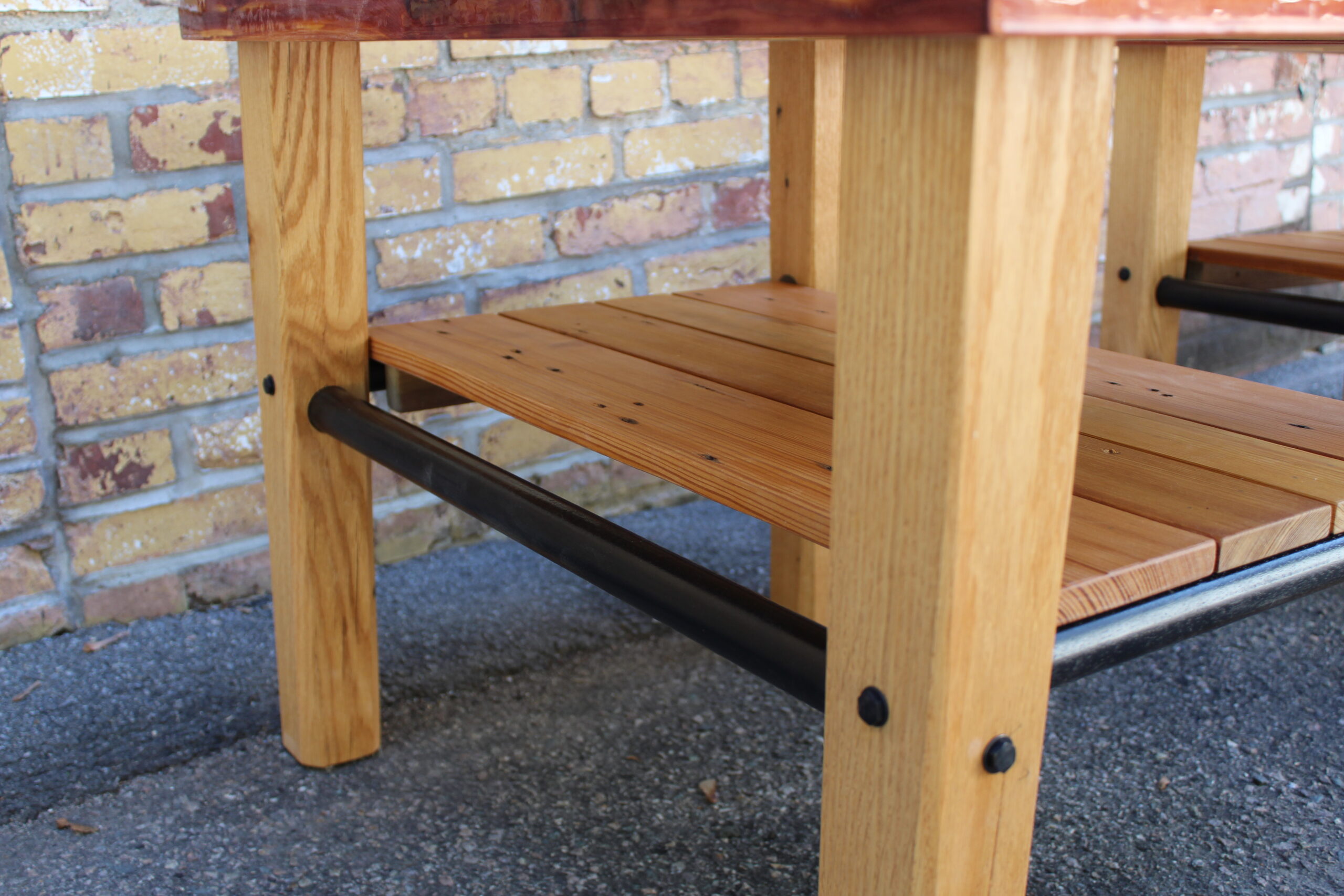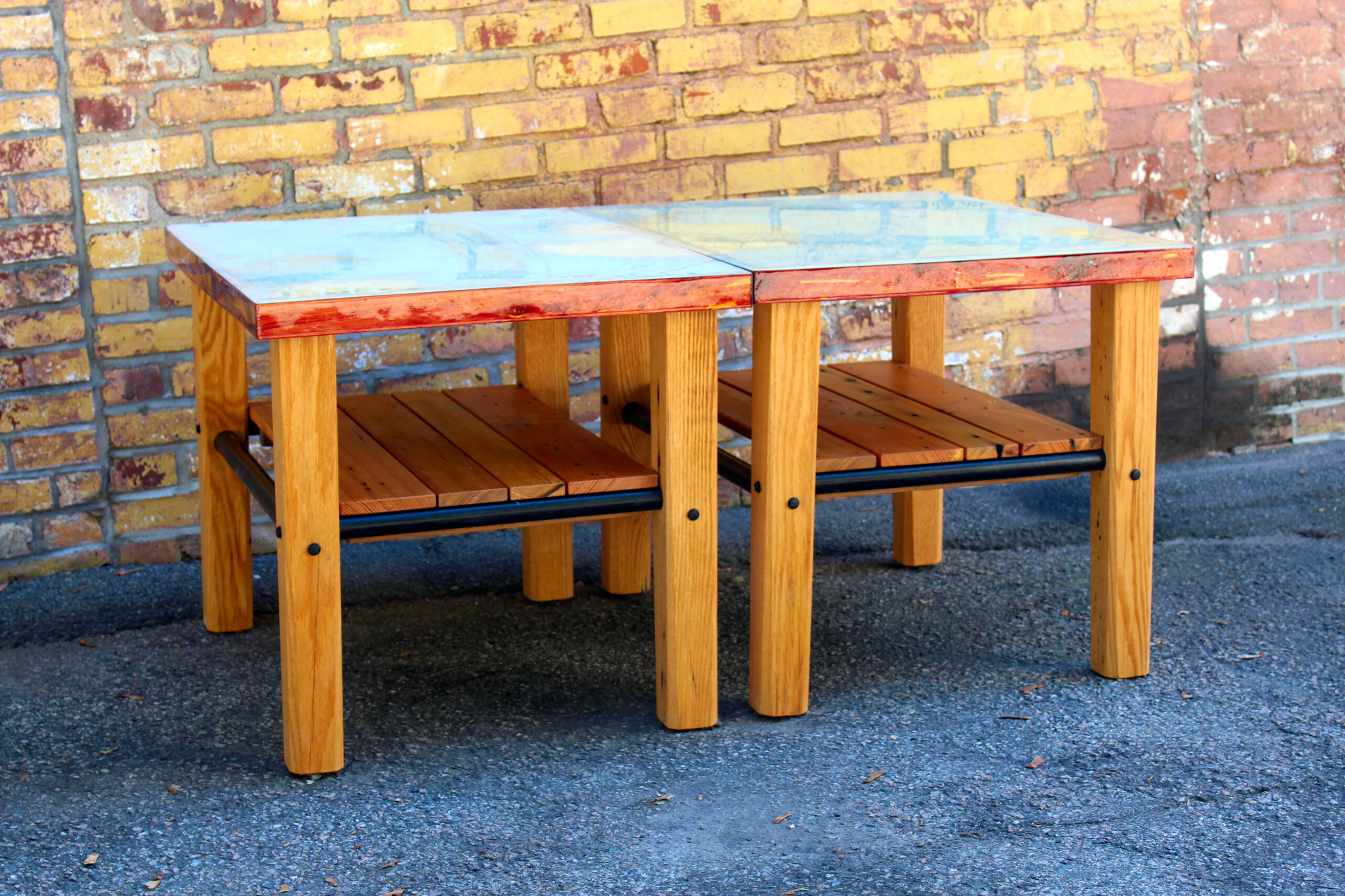 Jen had a chart of Antarctica that she inherited from her father, and she wanted to use it to make two side tables that could either go together as a single piece or be separated. She told me the dimensions she wanted and after some back-and-forth about style and types of wood, I drew up a few ideas for her to consider. In the end she opted for a combination of reclaimed barn oak, some pine and cedar scraps, and industrial accents from scraps of metal.