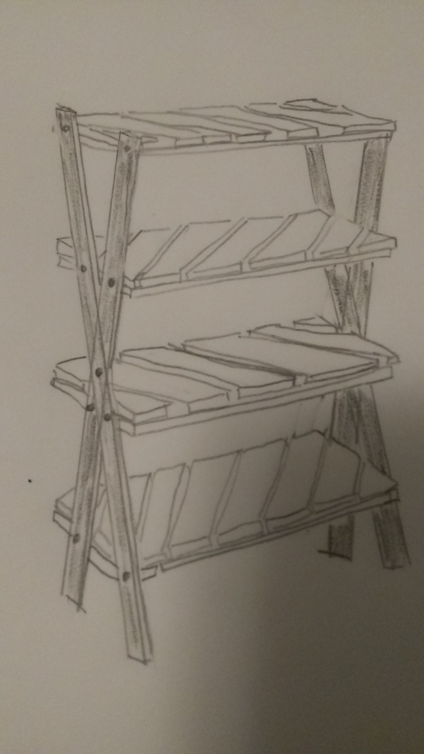 Roya wanted a set of shelves to use in her kitchen, that she could later repurpose as bookshelves. She sent me pictures of styles she liked, and after we had the overall dimensions figured out, I came up with some different design ideas. We finally went with a modern industrial vibe and rustic slatted shelves, using pine construction scraps.