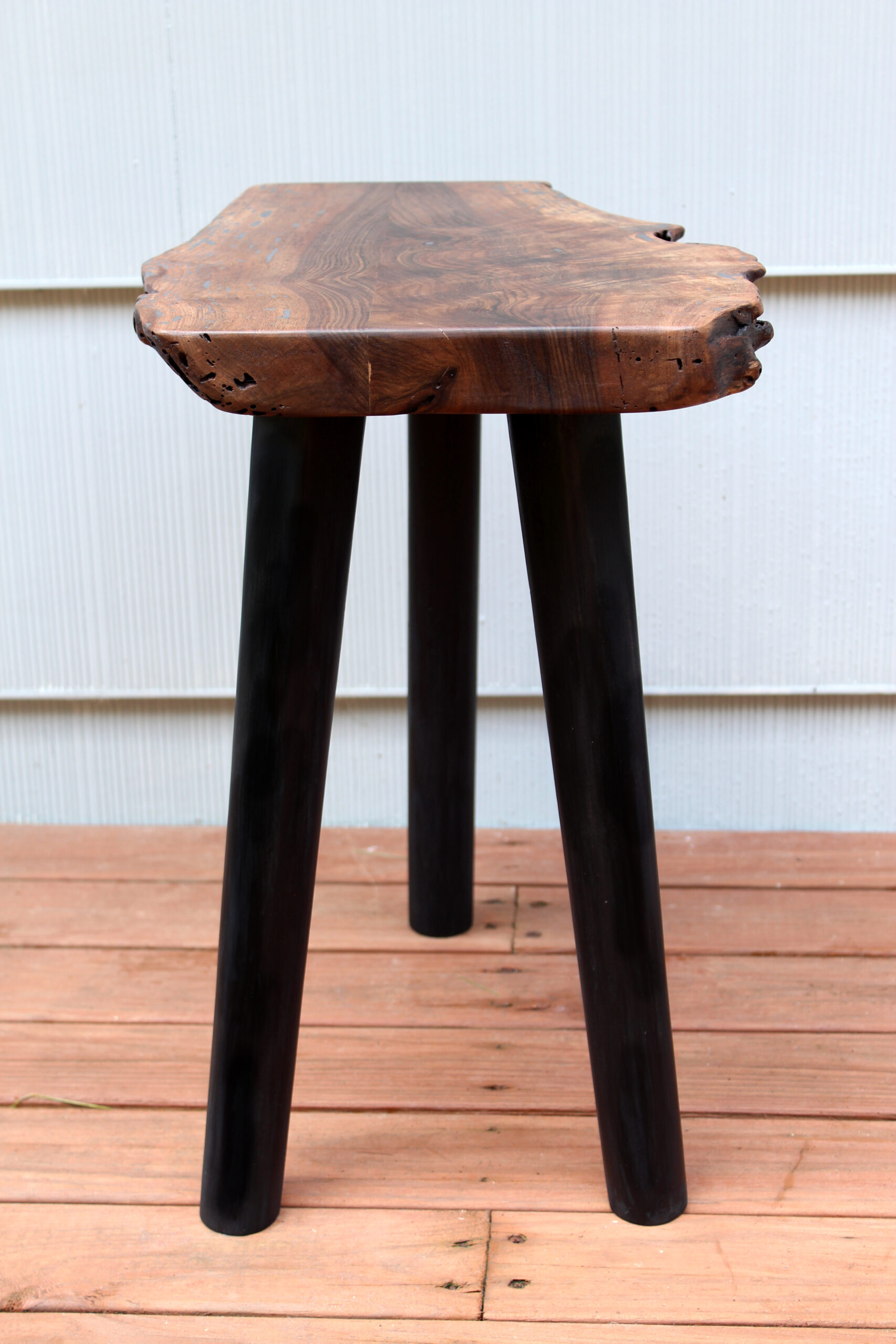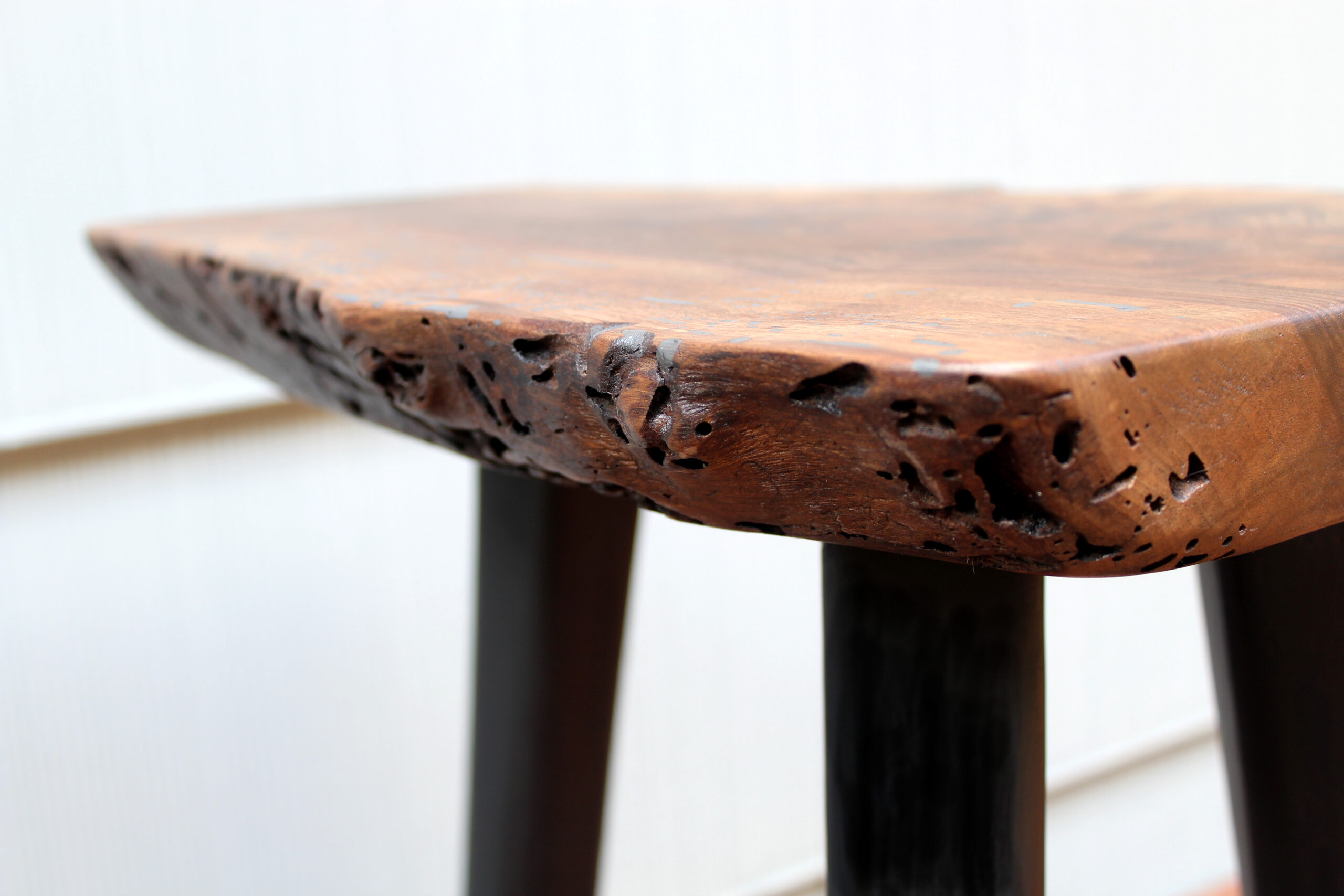 Rani wanted a side table to fit in a specific spot in her living room. She loved the reclaimed wood look, so we discussed different options and came up with a simple but elegant solution using an offcut of live edge walnut and some construction scraps.